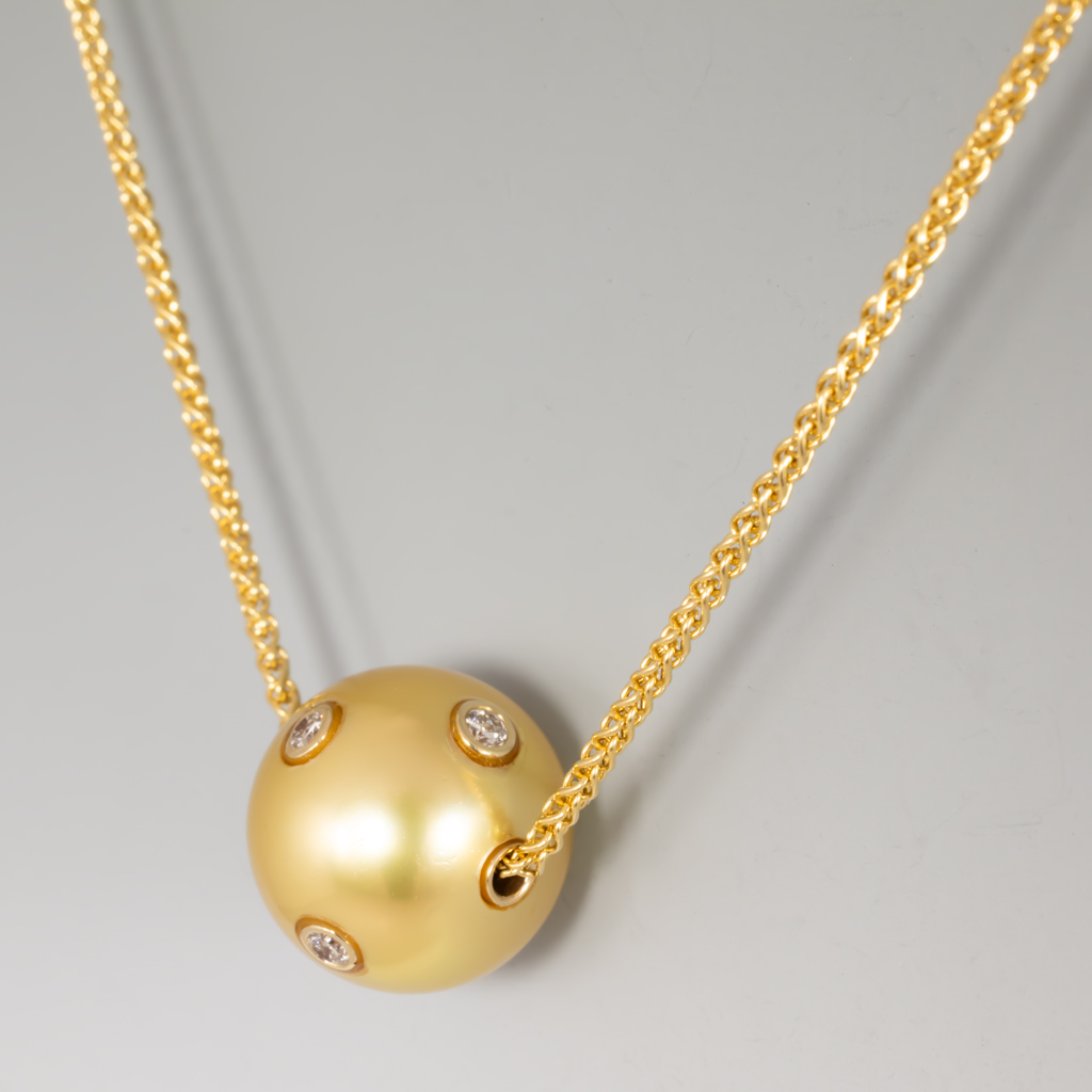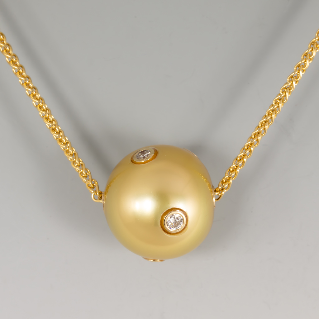 Gold South Sea Pearl Slide w/ diamonds on ADJ 18KY Spiga chain