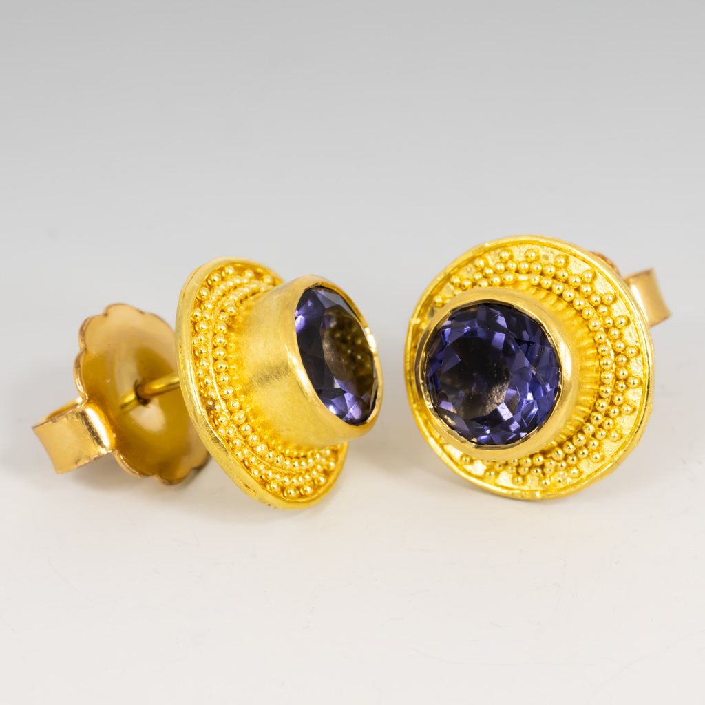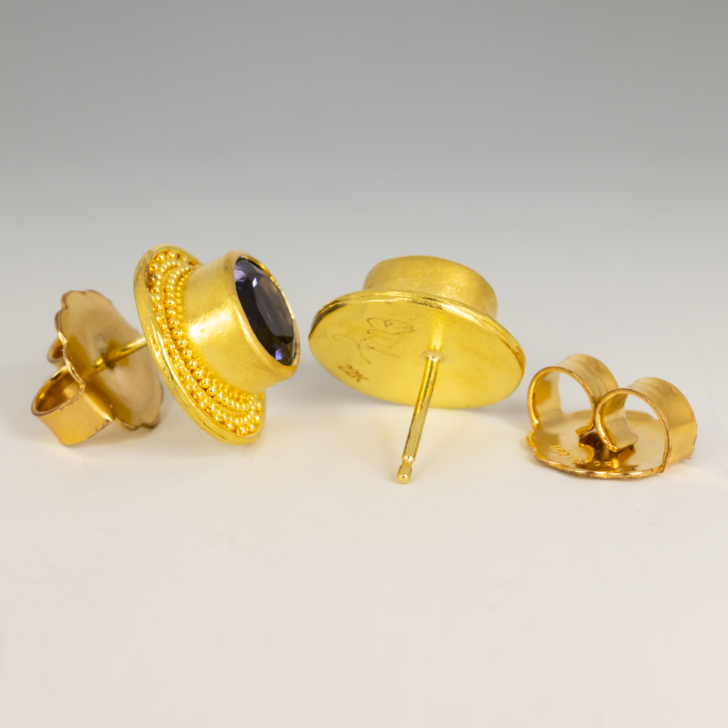 Rich, violet Iolite framed by the ancient Etruscan technique of Granulation.