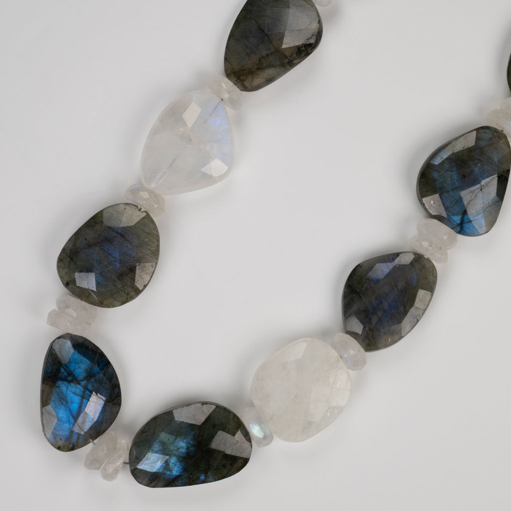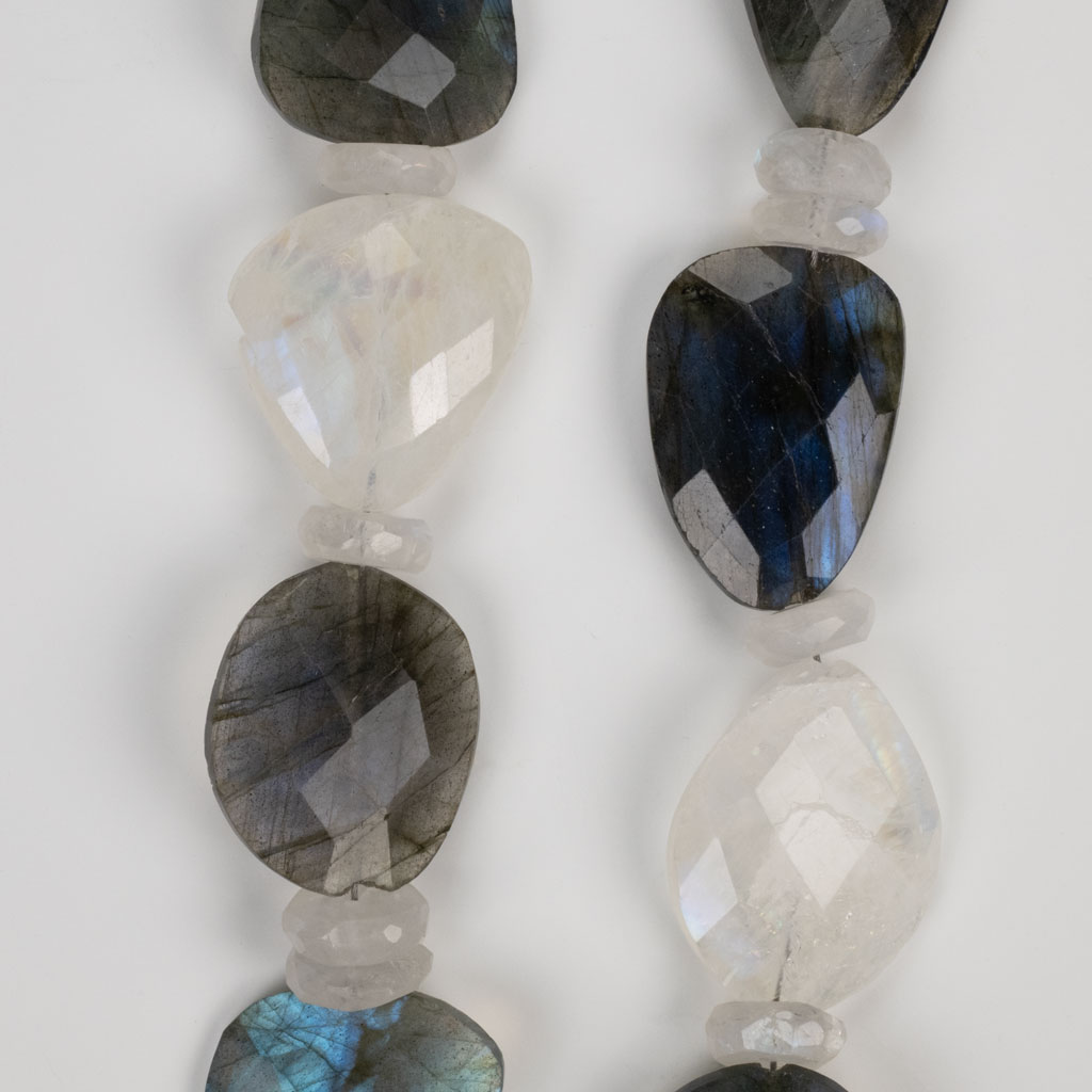 Moonstone & Labradorite in Faceted Organic flat shapes