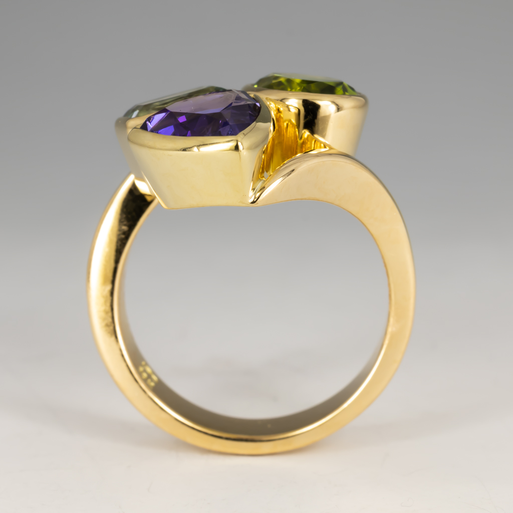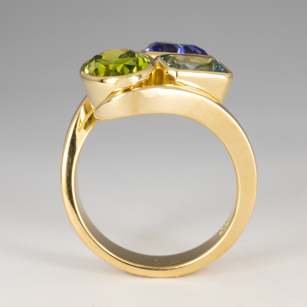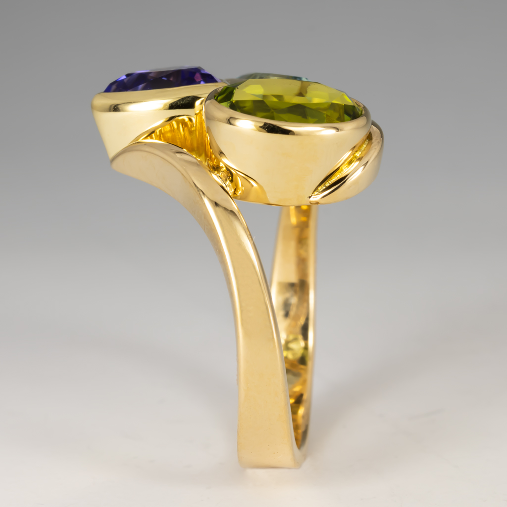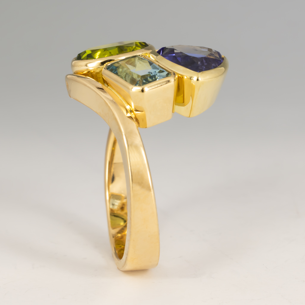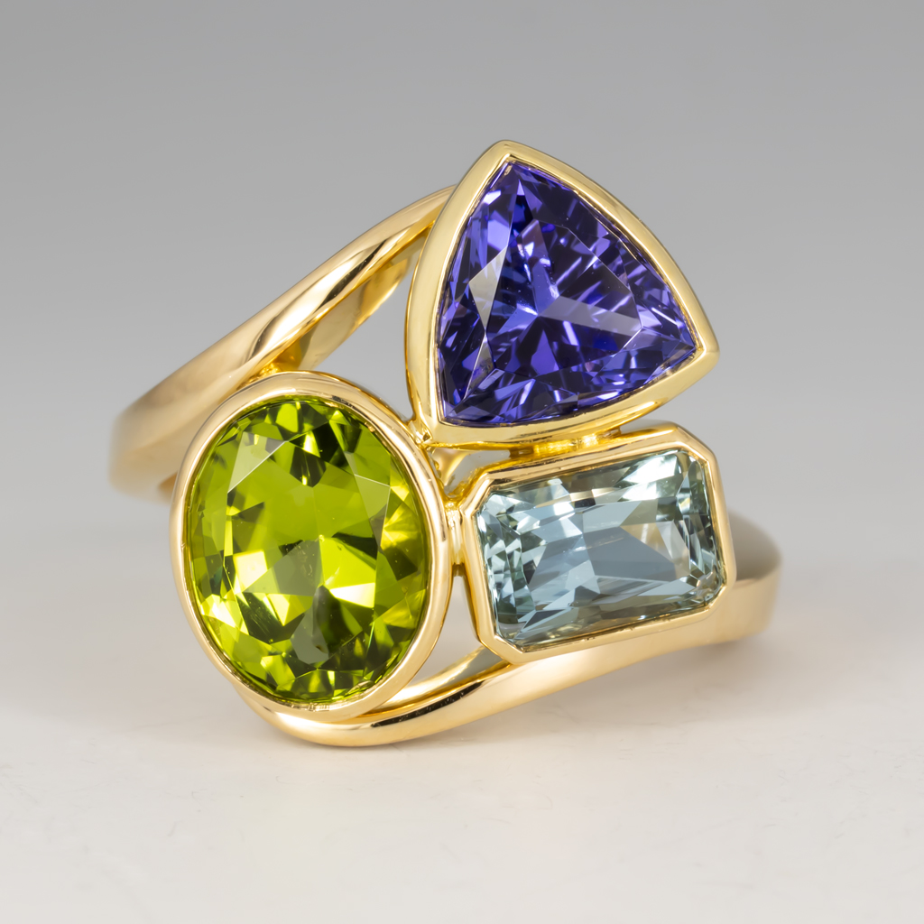 The wrap ring is one of our most popular, and versatile, designs, and can be customized for use in a variety of ways. Our customer wished for a ring that contained the birthstones of her children arranged attractively, and this piece delivers!