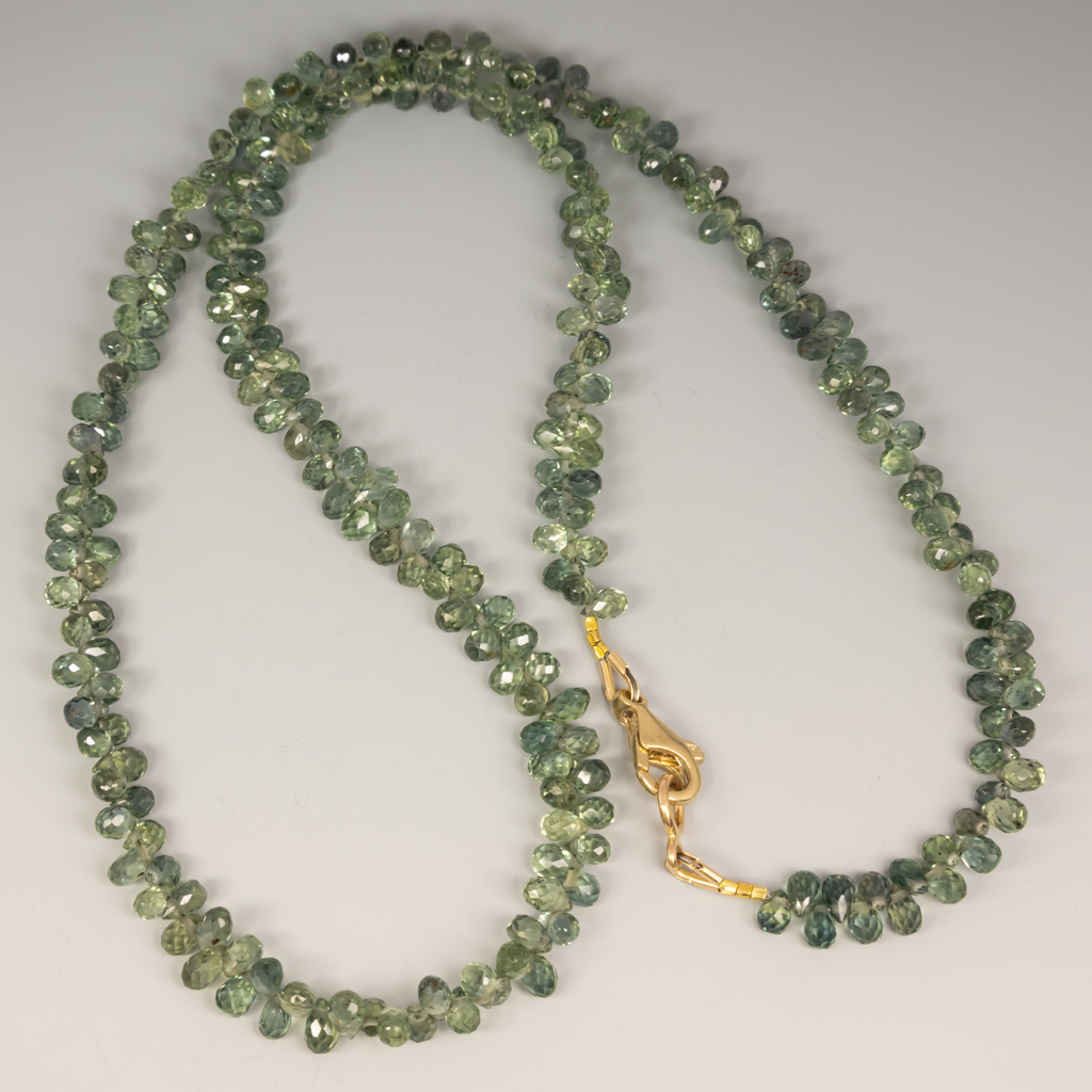 Necklace Green Sapphire Briolettes 14KY 17″