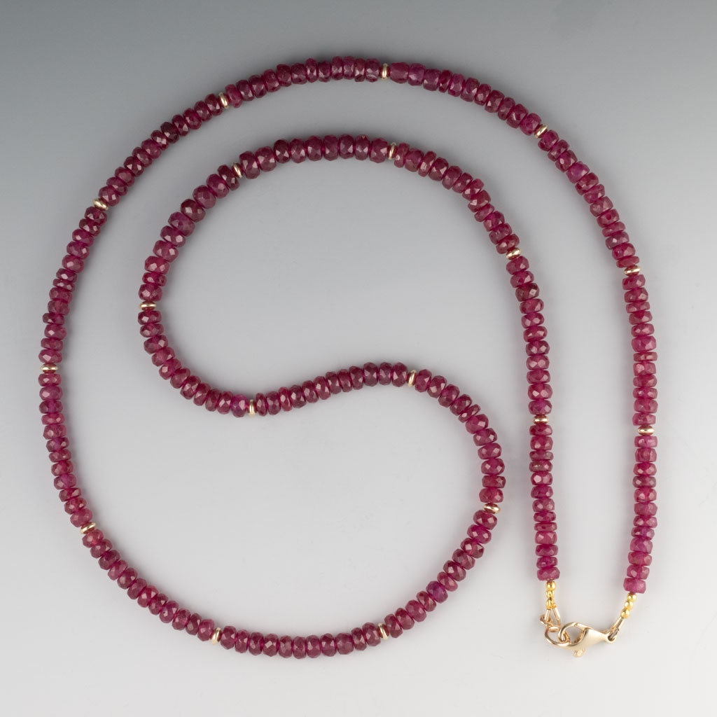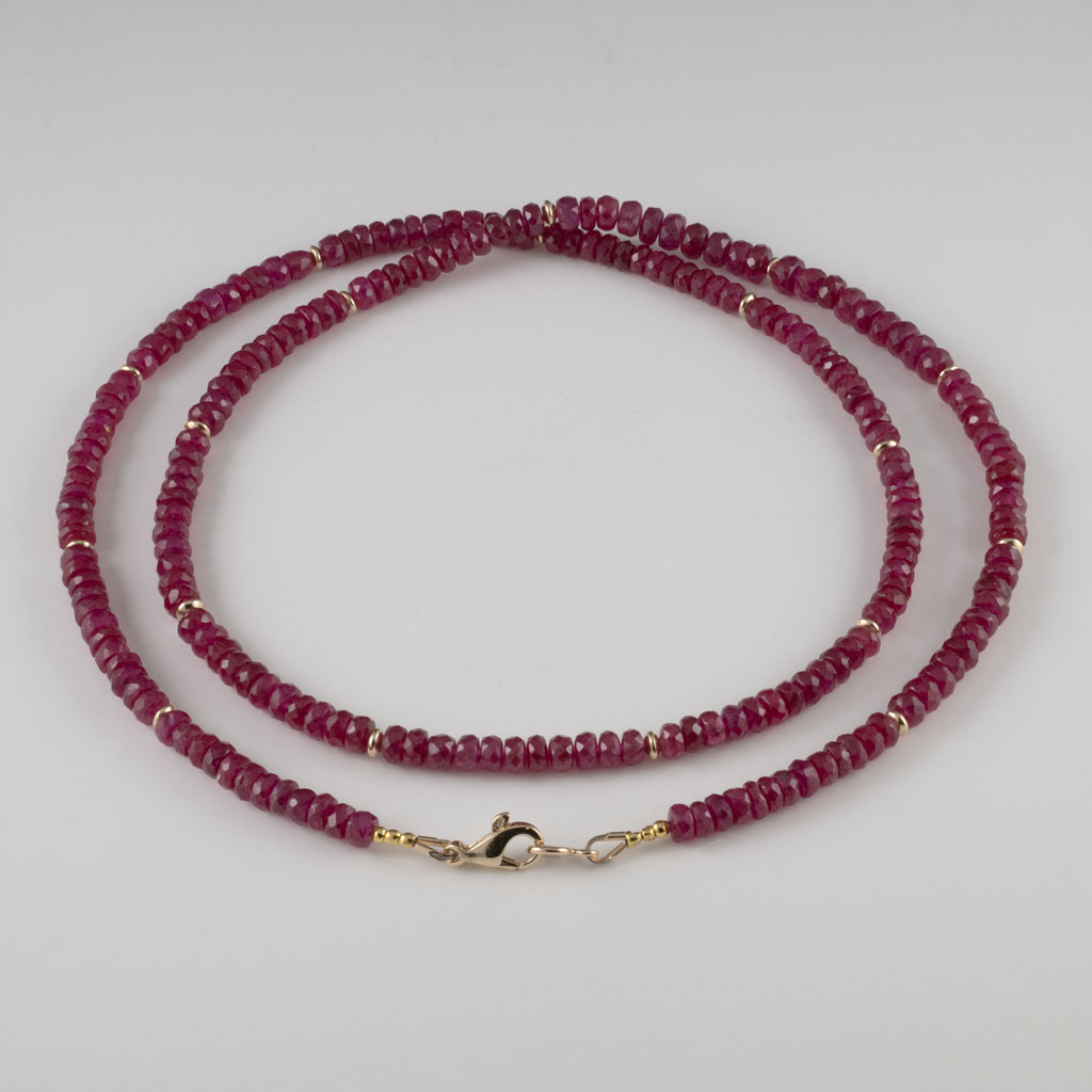 Necklace Ruby 4.5mm 14KY Saucer Beads 24″
