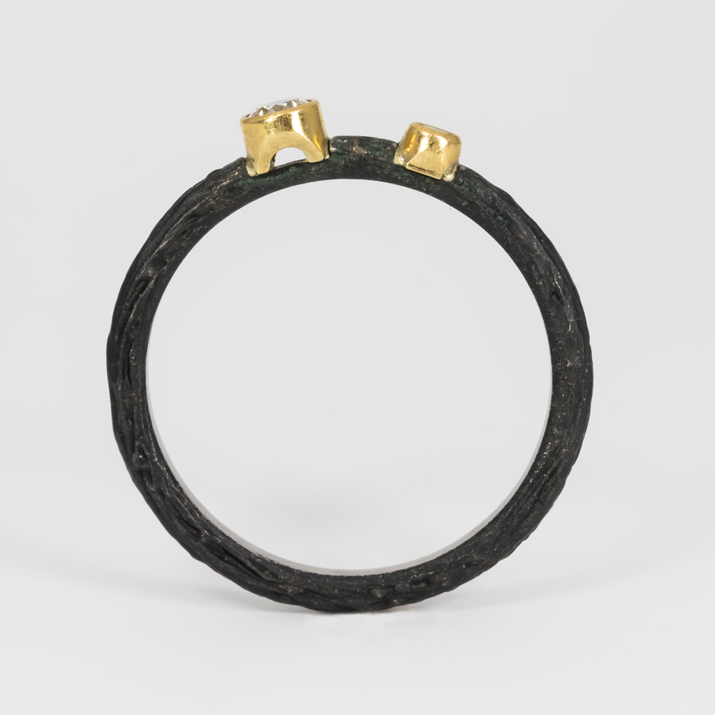 Cobalt Chrome Ring with two diamonds .13ctw (.03ct & .10ct) set in 18KY
