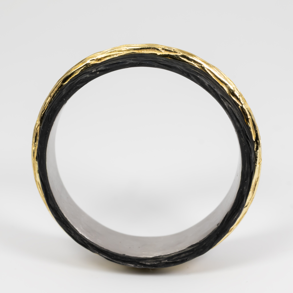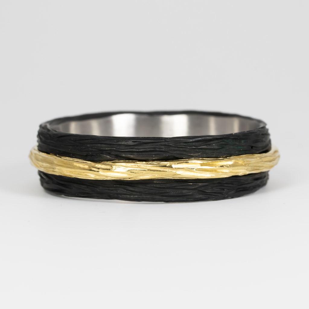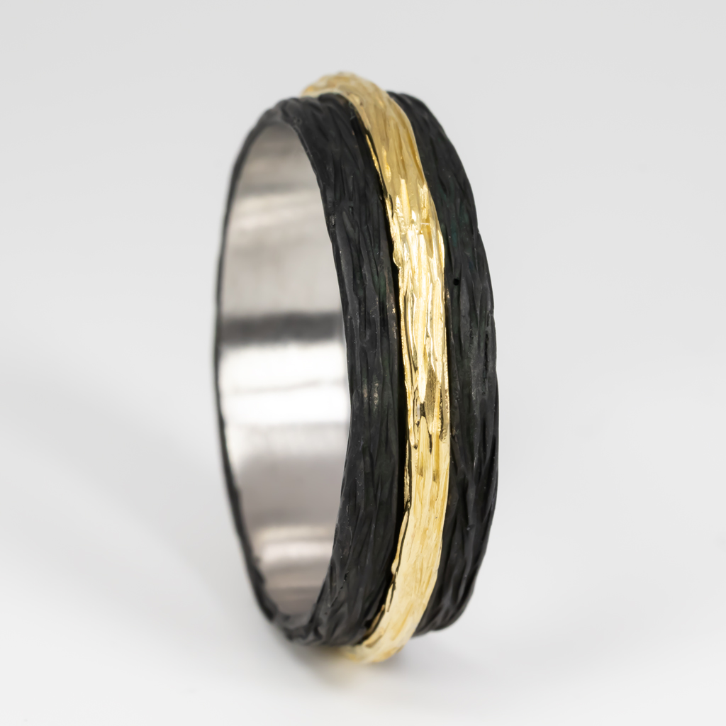 Oxidized Cobalt Chrome Band Ring with 18K Yellow Gold Stack center