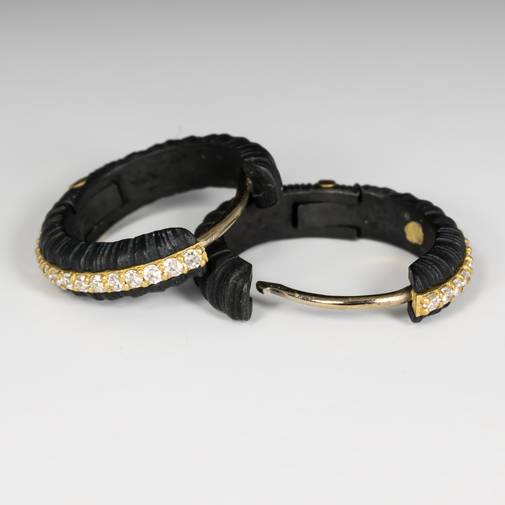 Ridge Hinged Hoop 12mm w/ .26ctw pave set white diamonds,