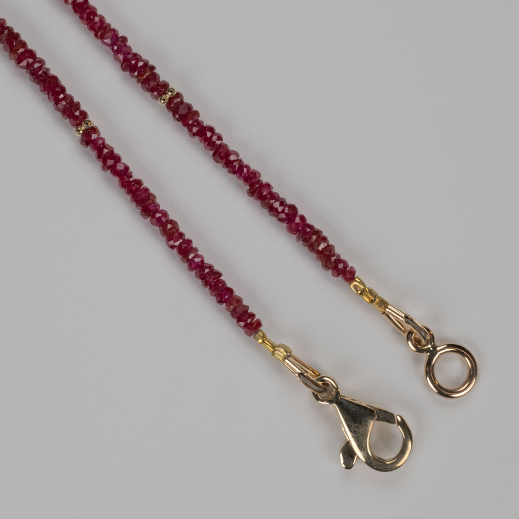 Ruby 2.5-3mm Graduated w/ 14KY Quad 17" Necklace quantity